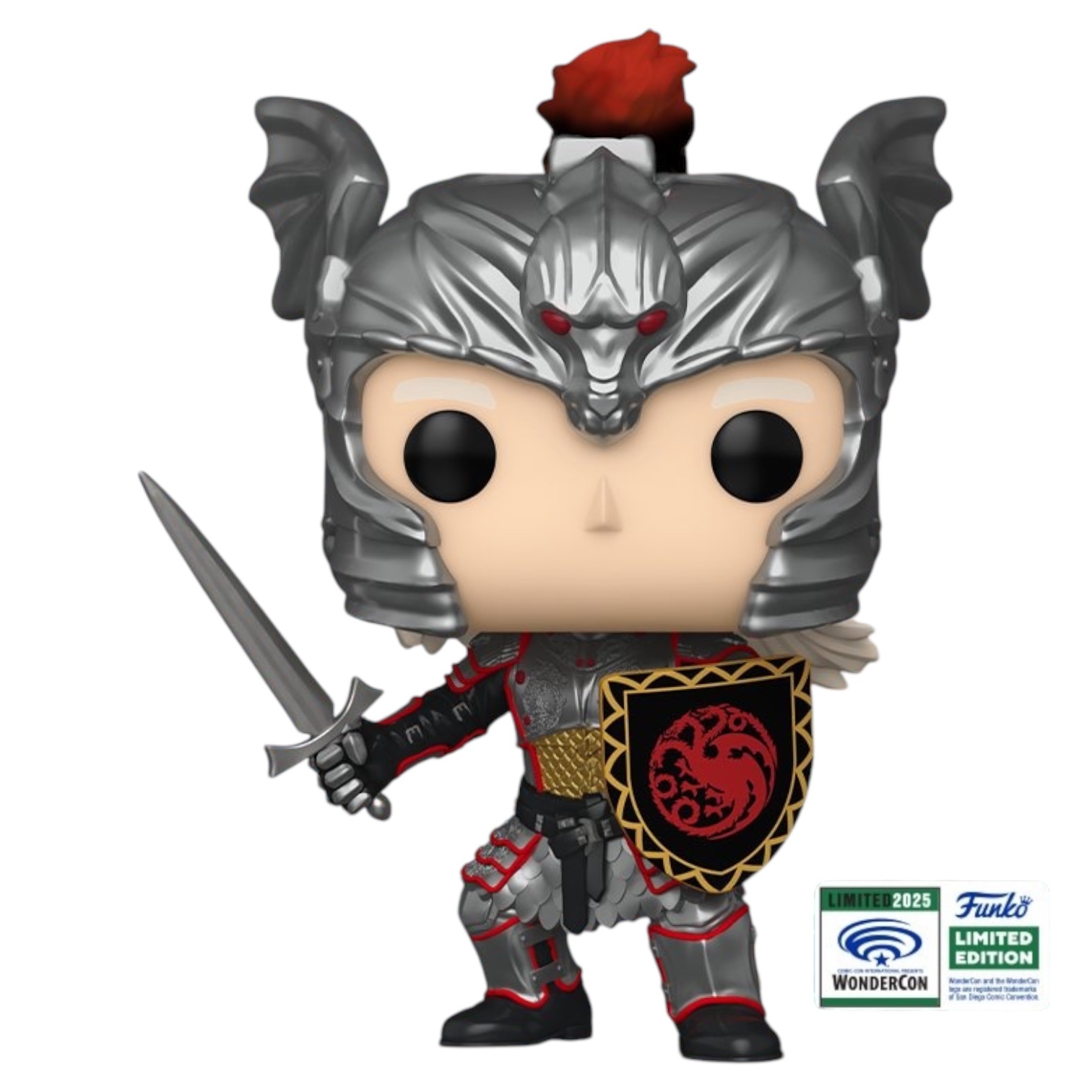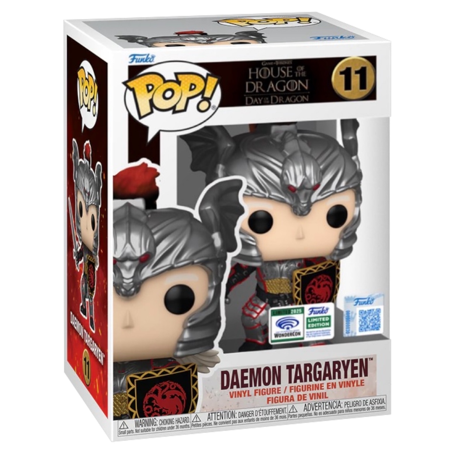 ¡Bienvenidos a la Danza de los Dragones! ¡La búsqueda del legado ha comenzado y Pop! ¡El príncipe Daemon Targaryen está preparado para abrirse camino hasta la cima! Vistiendo su icónica armadura Targaryen, este príncipe está listo para justar o batirse en duelo con cualquier oponente en tu colección de Juego de Tronos: La Casa del Dragón. Haz espacio para este realeza en tu casa para ayudarlo a asegurar su reclamo al trono. ¡La figura de vinilo mide aproximadamente 4,4 pulgadas (11,2 cm) de alto y viene preempaquetada en un POP de plástico UV Premium! Protector.
